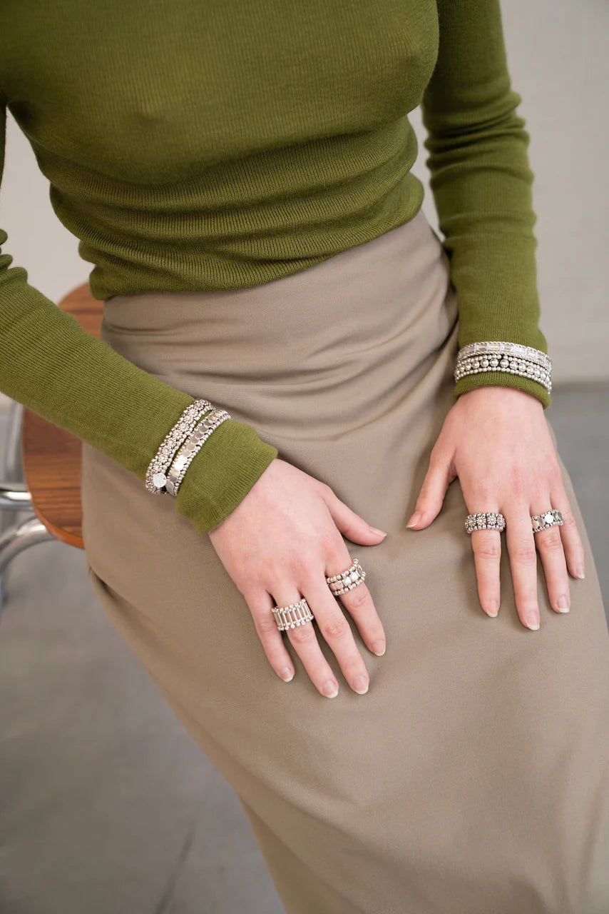 1989年,他在巴黎創立同名品牌,以藝術家的眼光創作飾品,Elastic 系列正是他最具代表性的設計靈感 --- 靈感源於古羅馬的珠寶語彙,搭配巴黎工坊手工編織的彈性結構與施華洛世奇水晶,優雅,貼合,無需尺寸,人人皆可佩戴。